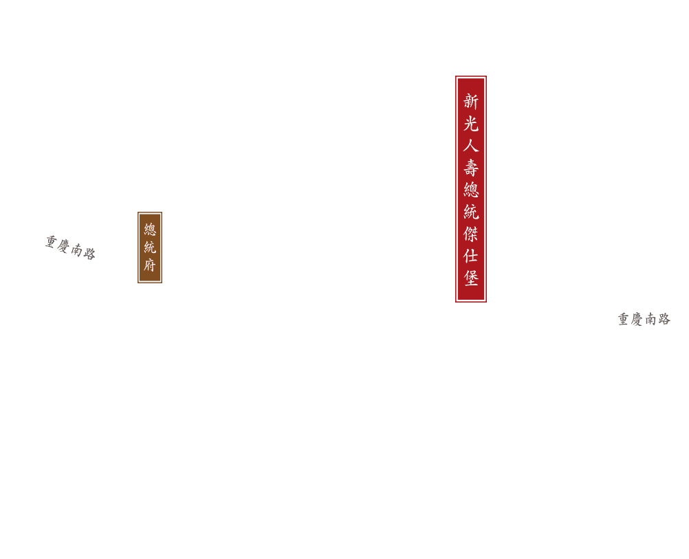 『新光人壽總統傑仕堡』緊鄰總統府所在博愛特區南邊,區域治安良好、街景怡人;此外,基地更坐擁重慶南路三段首排的優勢,能瞭望一片林蔭大道,地段顯達又靜美。